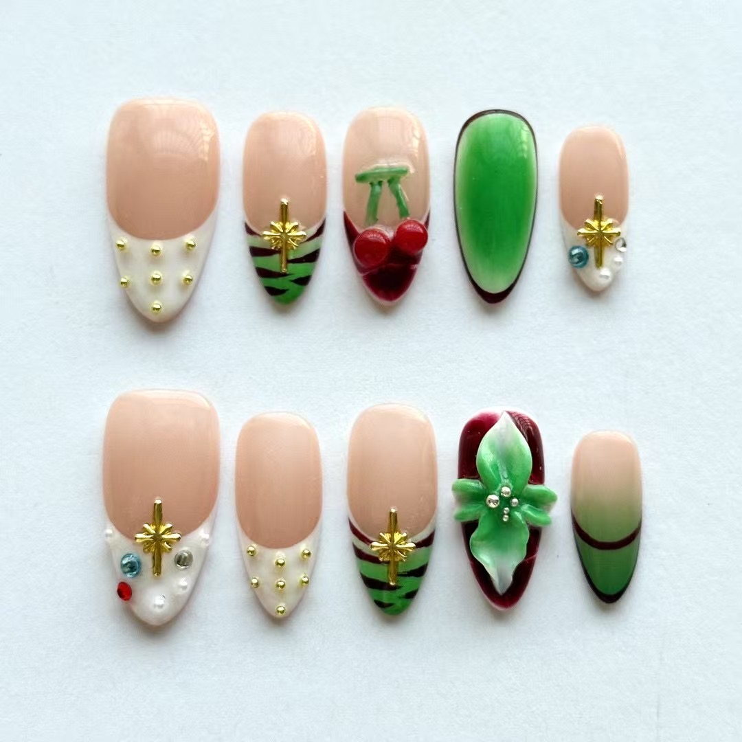 【Handmake】Neon Green Star Flowers Press On Nails LB027N
